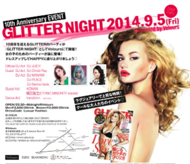 10周年を迎えるGLITTER のパーティーが「GLITTER NIGHT」として登場し、第2段としてVeloursにて開催決定!!