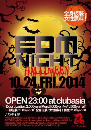 昨年700人オーバーを記録しclubasiaに伝説を残した「EDM NIGHT」がハロウィンの夜に復活!