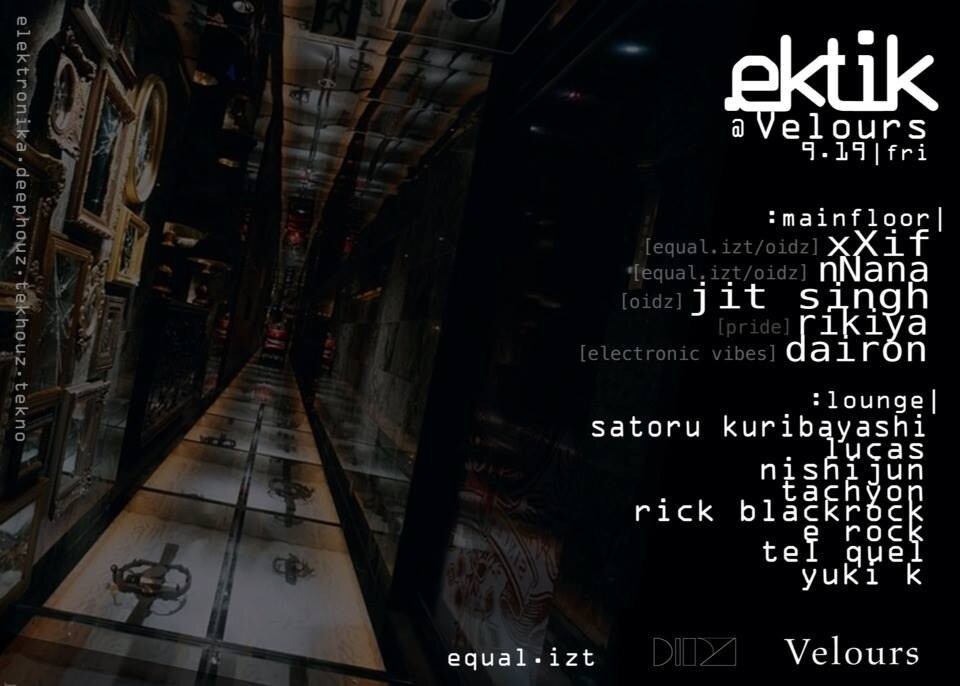 VELOURSがおとどけするノンストップのテクノ、ハウスパーティ『EKTIK』を開催!!