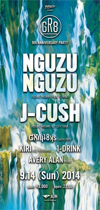 ヨーロッパのハイファッションから東京ストリート系ブランドまでを幅広くラインアップし、大人気を獲得しているラフォーレ原宿内のセレクトショップ“GR8(グレイト)”が、9周年を祝うパーティをAIRで開催する。この日海外からメインゲストにフィーチュアされるのは、Asthma MaroofとDaniel Pinedaからなる男女ユニットNGUZUNGUZUだ。LAを拠点に活躍する彼らのサウンドは、最新のシカゴジュークからUKベース、ハイテックハウス、レゲトン、クンビア、ヒップホップ、R&B等あらゆる音のエッセンスを取り込み再構築したものとして高く評価されている。NYCからJ-CUSHも参加する貴重な瞬間が待ちきれない。