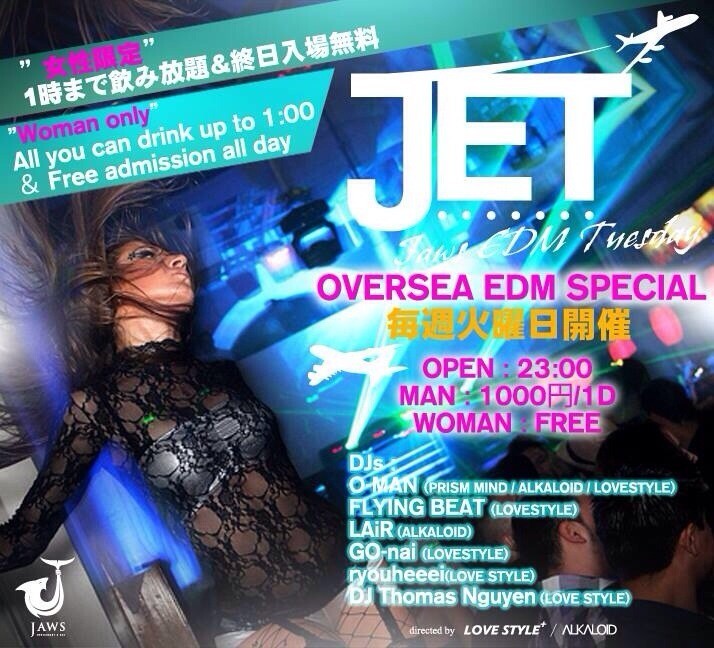 クラブでフェスミュージックが楽しめる火曜日は「JET」だけ!