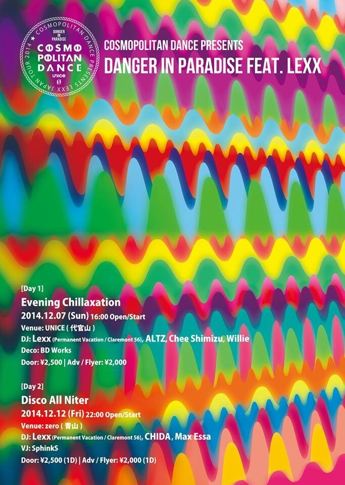 共演には、かねてからLexxとも親交の深いChida (ene / FUNIKI ENE)、Max Essa (Is It Balearic? / Jansen Jardin)らが登場して狂乱の宴の予感。