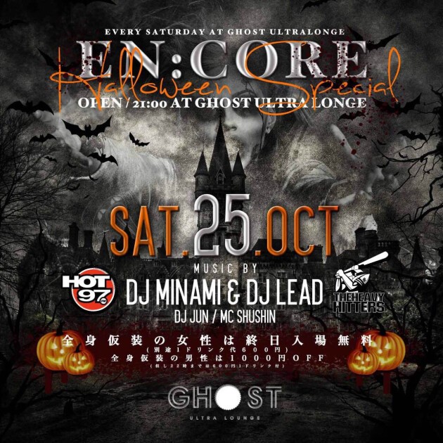 毎週土曜日はゴーストが提案する世界標準のインターナショナルパーティー『EN:CORE』、今ラスベガスやNYのCLUBで話題のスタイル(HIP HOP、EDM、TOP40 ゴチャ混ぜジャンルレス)。長年大阪のクラブDJとしてトップに君臨し続けるDJ MINAMIだからこそなし得る、他のオールミックスとは一線を画す究極のサタデーナイトパーティー!