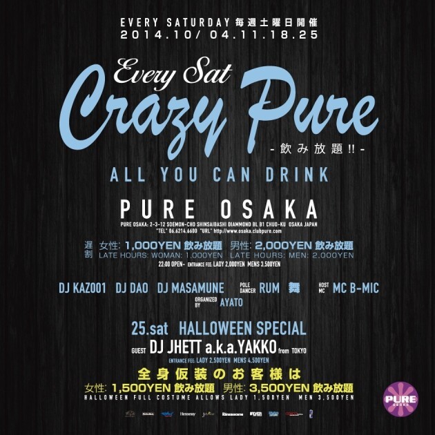 毎週土曜PURE OSAKAで盛り上がりを見せる人気パーティCRAZY PURE!!