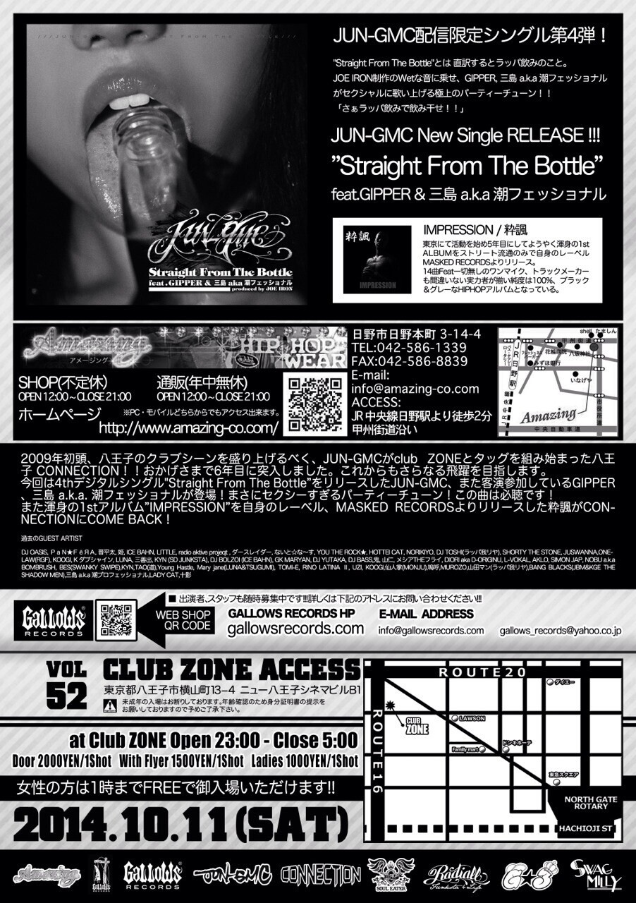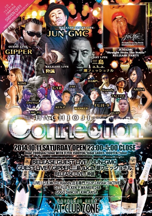 2009年初頭、八王子のクラブシーンを盛り上げるべく、JUN-GMCがclub ZONEとタッグを組み始まった八王子 CONNECTION!!