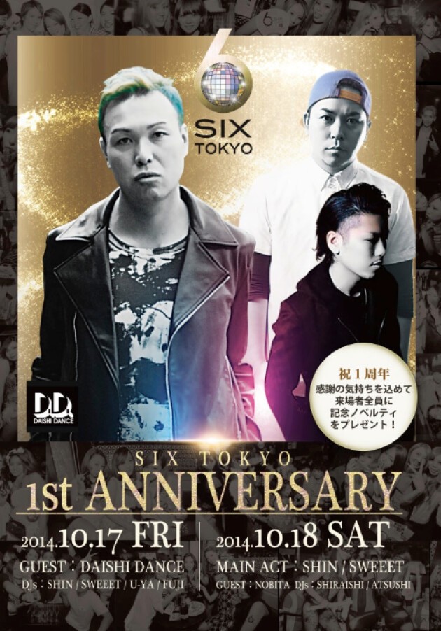 SIX TOKYO 1ST ANNIVERSARY PARTYが10/17(金)&18(土)に開催!17(金)には『DAISHI DANCE』が登場
