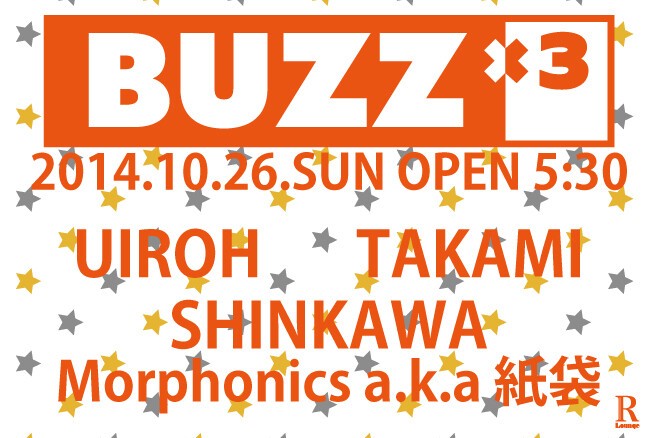 TOKYOが産んだ独自のAFTER HOURSシーン。今もなお早朝から刺激を求め、フリーク達が渋谷R LOUNGEへと足を運んでいる。そんな重要なシーンに無くてはならない三人のDJ、UIROH, TAKAMI, ATTが繰り出すのが「BUZZ×3」。