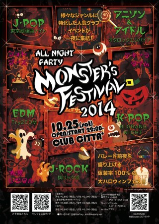翌日開催される国内最大級(参列:約3,000人/動員:10万人以上)の仮装パレード、その前夜祭として【KAWASAKI Halloween 2014】全体も盛り上げます!