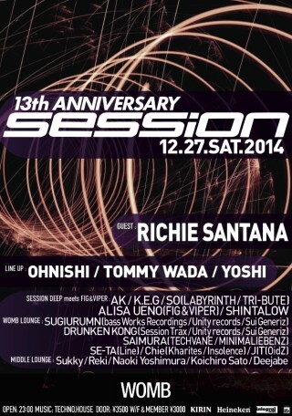 WOMB で長い歴史を誇るパーティー SESSION が13周年を迎える。