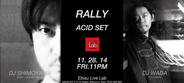DJ shimoyamaプレゼンツ「RALLY」第二回は、ゲストに「テクノ界に生きるレジェンド」DJ WADAと「ハウス界の貴公子」DJ SHIMOYAMAの夢のラリー。貴公子とレジェンドは六本木ネオジャポネスクから数えて25年ぶりの競演となります。DJ WADAは初となるアシッドハウス・セット、ファンならずとも大注目!!!DJ SHIMOYAMAは80年代後半にイビザとロンドンで当時のアシッドハウスを経験しており、アシッドハウス・ムーブメントを体験してる数少ないDJの一人。レジェンドと貴公子のアシッド・バトル?!きっと吃驚仰天のプレミアムな一日になるでしょう!!