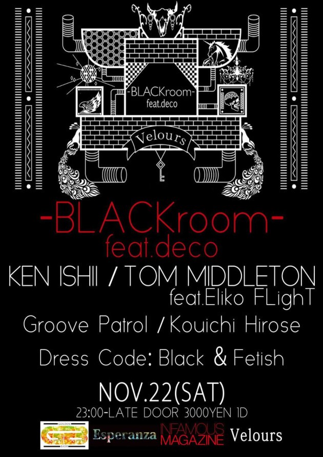 Veloursで開催されるBLACKroomにFetish Fashion誌 "INFAMOUS MAGAZINE"主催のParty『deco』がfeaturing! 東洋のテクノゴッドKen Ishii,Tom Middletonが出演。