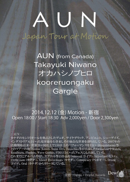 出演 : AUN (from Canada), Gargle, Takayuki Niwano, kooreruongaku, オカハシノブヒロ