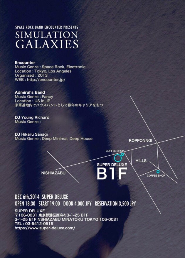 NEXT: YR WILL DEEJAY AT SuperDeluxe DECEMBER 6TH FOR SIMULATION GALAXIES LIVE WITH Encounter (Lead vocal) Mikari Suzuki /鈴木みかり + Daisuke Hinata + Fuminori Ikeba + MORE