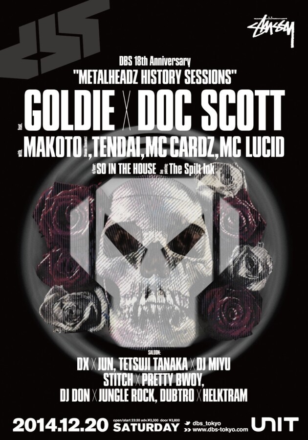 ★1996年にスタートしたDRUM & BASS SESSIONS (DBS)が18周年を迎える! その記念すべき一夜はDBSに最大の影響を与え、今年設立20周年となるドラム&ベースのパイオニア・レーベル、Metalheadzの歴史的セッションズ! フロントアクトは勿論、Metalheadzを主宰し、ドラム&ベースを創造したGOLDIE、そして彼と共にMetalheadzを立ち上げ、今なおシーンの最前線に立つDOC SCOTT。レジェンド二人が揃ってDBSで競演する!そして 日本を代表するMAKOTOを始め、サポート陣も最強のメンツ。リアル・サウンズ&リアル・ヴァイブスを体験してほしい! 12/20 (土) 代官山UNITに集合!Da Bass ll Dark!!