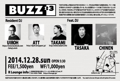 そんな重要なシーンに無くてはならない三人のDJ、UIROH, TAKAMI, ATTが繰り出すのが「BUZZ×3」。