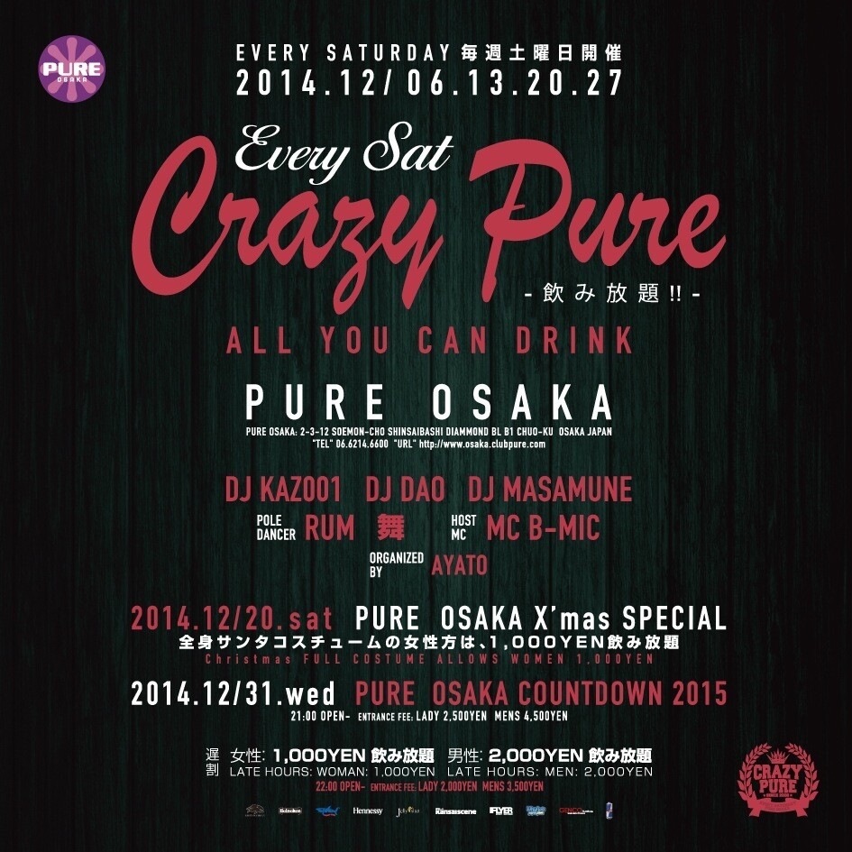 毎週土曜PURE OSAKAで盛り上がりを見せる人気パーティCRAZY PURE!!