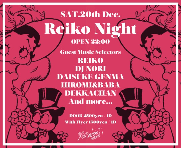 東京ナイトライフにおいて彼女が手掛けるパーティーを体験することは、常連だけに提供されるシェフ自慢の裏メニューを味わうことに似ている。マーク・ジェイコブスからソフィア・コッポラまで、世界各国のセレブリティがこよなく愛する恵比寿会員制バーCASBAのREIKOが、Le Baron de Parisを舞台に繰り広げるエクスクルーシブな夜。2014年を締めくくるレイコママのオトナな夜を堪能あれ♡
