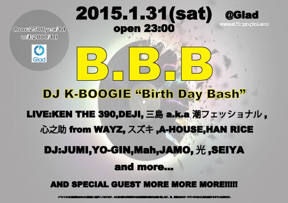 毎年恒例のGlad店長、K-BOOGIEのBIRTHDAY PARTY!!長年の縁ある錚々たるアーティストが集結!!お楽しみに!!!