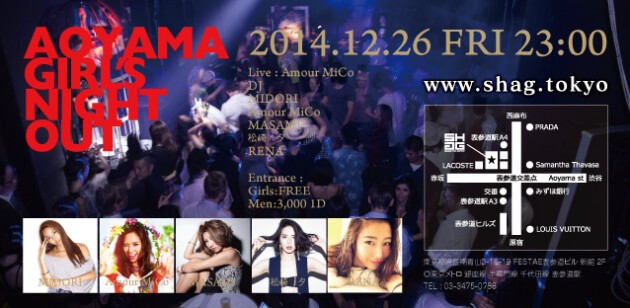 2回目の開催となるかわいい・キレイなFEMALE DJが参加するSHAGきっての華やかさを誇るPARTY「AOYAMA GIRLS NIGHT OUT」