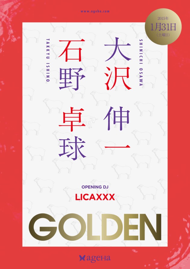 大沢伸一と石野卓球!日本を代表するアーティストとして活躍するツートップがダブルヘッドライナーを務めるGOLDENが2015年も開催決定!!!サポートアクトには話題のフィメール・アクトLicaxxxが登場。