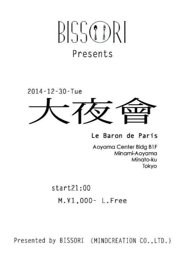 古民家一軒家で味わう本格ワイン韓国×イタリアンの新感覚ワインバルとして噂の高い”BISSORI(ビソリ)”が主催する2014大夜會。今までに味わったことのない経験を提供するBISSORIによるステキな一夜を是非、大切な方とお過ごしください。