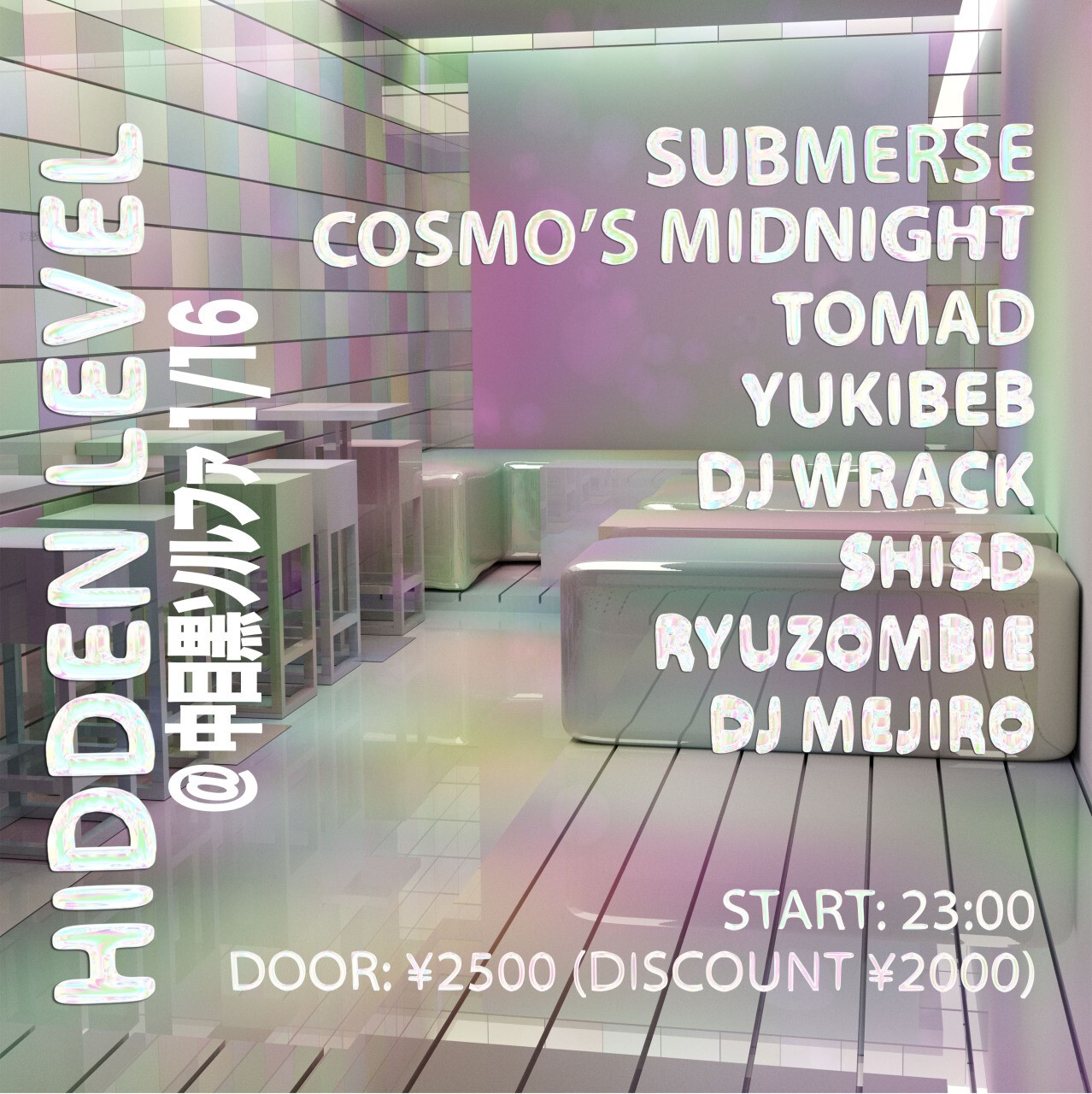 HIDDEN LEVELは文字通り、地域、ジャンル問わず音楽の隠された層に存在するアーティストの関わりを祝う為の新たなパーティーだ。今回のHeadlinerを在京イギリス人の若手ビーツメーカーのsubmerseとシドニーの新興のインターネット・ポップ・デュオCosmo’s Midnightにつとめてもらう!サポートは東京ローカルズ、マルチネ主宰Tomad、SoulectionメンバーYukibeb、Chemical MonstersトップDJ Wrackと当Valley Spiritレーベル 長Shisd。