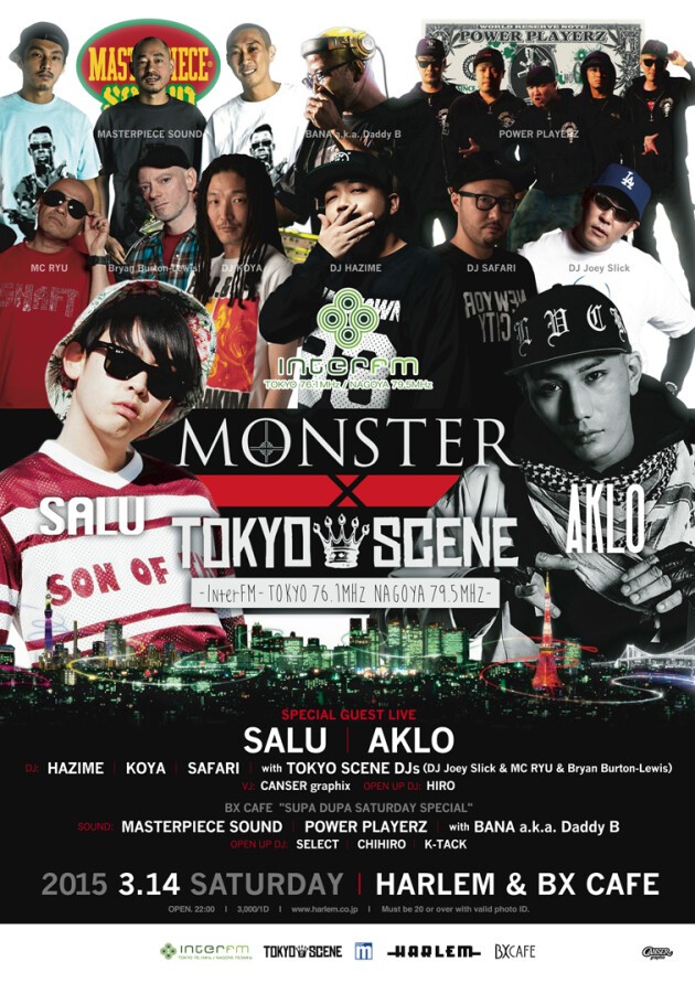 東京を代表するHIP HOPパーティー・HARLEM ”MONSTER”と、東京のクラブシーンを揺るがすクラブミュージック番組 InterFM “TOKYO SCENE”による、超豪華コラボレーションナイトの開催が決定!