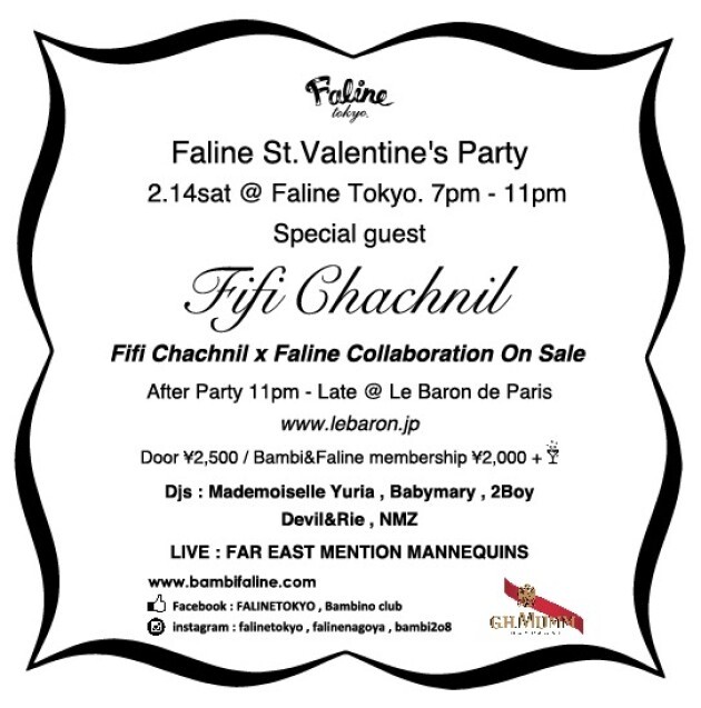 1984年、デザイナーのFifi Chachnilにより立ち上げられた、フランス・パリの老舗ランジェリーブランドデザイナー。彼女の手掛けるランジェリーは陽気でユーモア溢れ、時には激情的なパリジャンヌたちをイメージした、可愛らしくも情熱的なデザインが多く展開。シャンソン歌手としてスタートした彼女はエジプシャン語で歌を歌い始めたのが最初で、エジプシャン語をもじって作ったのがシャシュニール。今回はフィリップキャサリンがコンポーザーとなり、作詞作曲を手がけている。今夜はその彼の新曲をルバロンにてフィフィが披露!