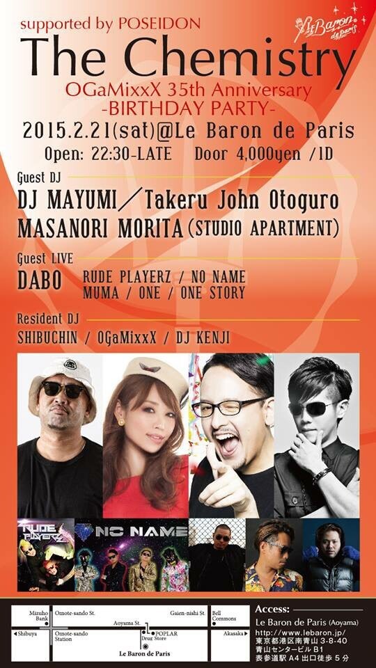 ビジネスもプライベートもパワフルに活動する東京屈指のパーティーピープルなオーガナイザーたちが結集。Le Baron de Parisにて立ち上がったあの伝説のパーティー“The Chemistry”をきっかけにとてつもないCHEMISTRY(化学反応)が起こる。