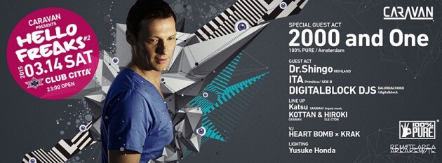 2015年、CARAVANの始まりはテクノ・ハウスシーンの重要人物、オランダ名門レーベル『100% Pure』の主宰、【 2000 and One 】をスペシャルゲストとして招聘する。ミニマル・サウンドに目配せしつつアップリフティングなテクノファンクを数多く発表し、『100% Pure』を一躍テクノ・ハウスDJの注目を集める人気レーベルへと成長させ、シーンを代表するトッププロデューサーとして多方面から揺るぎない信頼を得ている。 確かなる地位を築いたオランダを代表する【 2000 and One 】のサウンドにご期待頂きたい。
