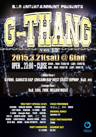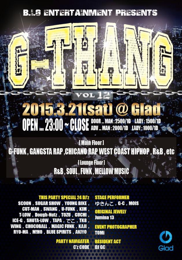 WEST COAST HIPHOP・GANGSTA RAPシーンで活動している関東各地のDJが渋谷に集結し、新譜旧譜問わずG-FUNK・G-RAP・WEST COAST HIPHOP全快でおくる渋谷において唯一無二のG-STYLE DJ ONLY PARTY!!!!!