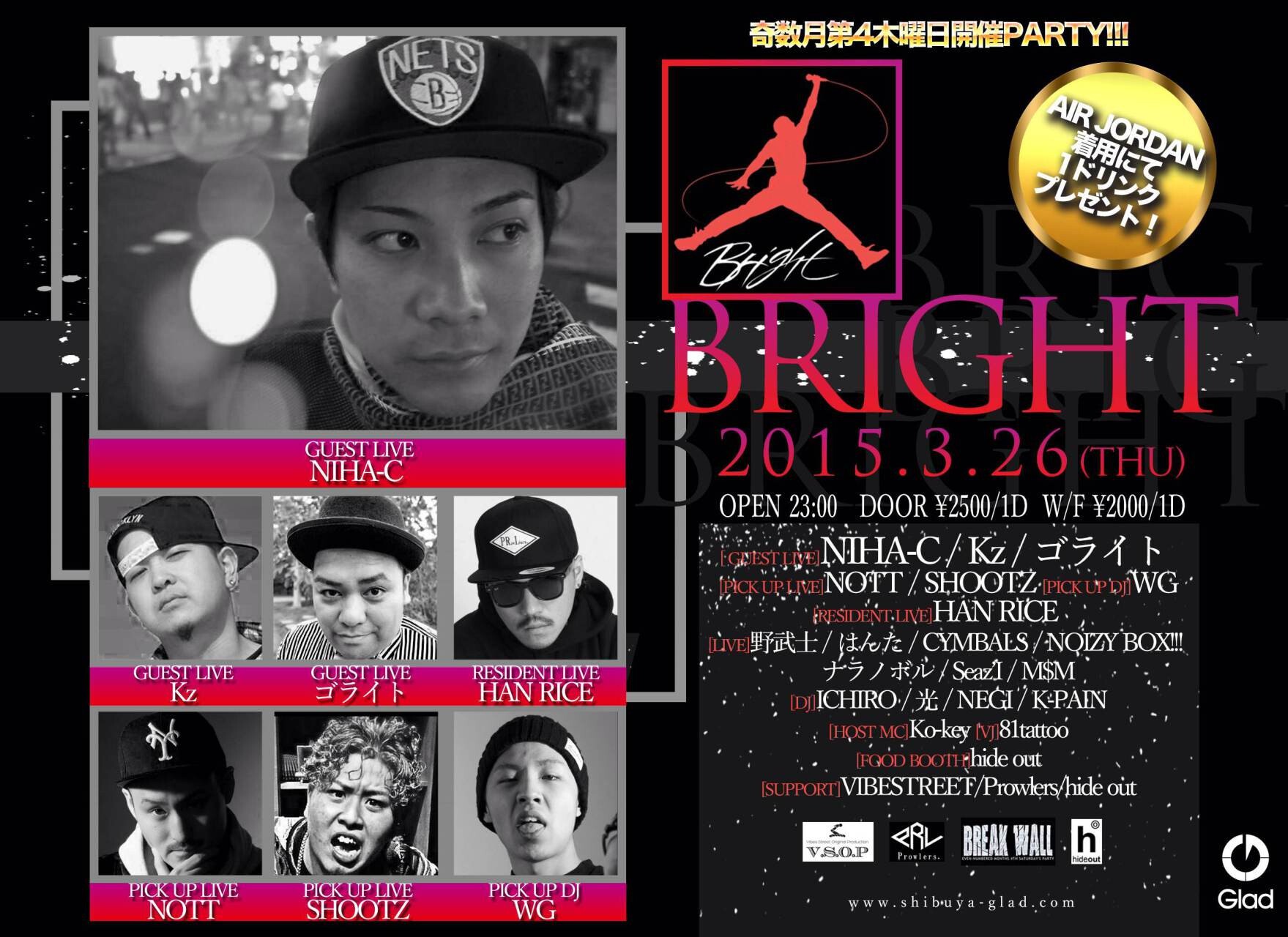 2014年7月より渋谷Gladで始まった奇数月第4木曜日開催PARTY「Bright」!!