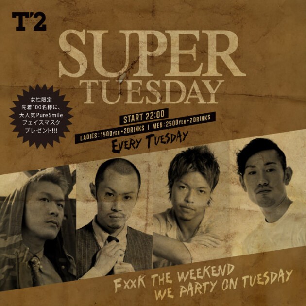 東京の中心地、渋谷の新たな遊び場「T2 SHIBUYA」が、毎週火曜日に開催するパーティー「SUPER TUESDAY」。