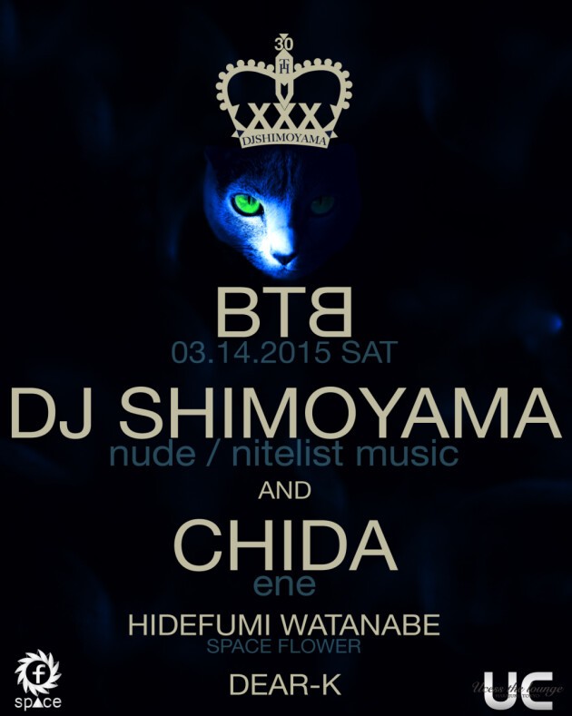 今回はDJ SHIMOYAMAと兼ねてから親交の深い、アナログリリースに特化するインディペンデントレーベル"ene"主宰のCHIDAをフィチャー。昨年度ベルリンをはじめストックホルムなど世界的にクラブカルチャーが発展した主要都市でヨーロッパツアーを敢行し成功を収める。現在数多くの海外アーティストのRemixを手掛けその活動は多岐にわたる。