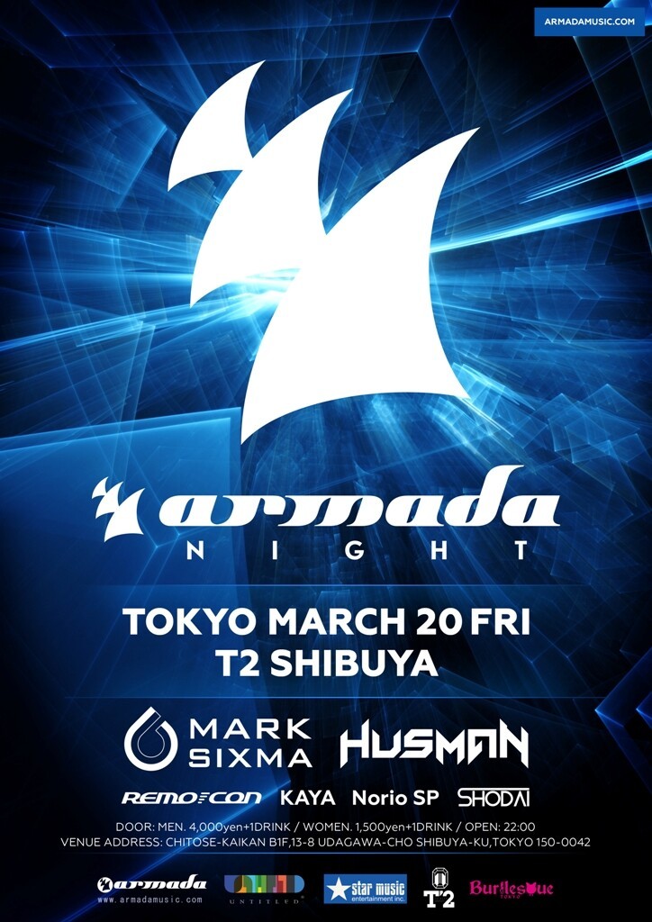 今回は「Armada Records」より今最も注目のアーティストMark Sixmaに加え、期待の新星Husmanを招き3月20日金曜日にT2 SHIBUYAにて開催が決定した。更に、前回素晴らしいパフォーマンスを魅せてくれた、日本を代表するプロデューサー・DJ ”REMO-CON" "KAYA"らが今回もパーティーに花を添える。かつての一大ムーブメントで世の中を席巻し、昨今のEDMムーブメントの起点とも言われるジャンルTrance。クラブミュージックの名門レーベルであるArmada Recordsが手掛けるイベントとあって、「Armada Night」は、Tranceのオーディエンスのみならず、EDMミュージックファン、クラブミュージックファンをはじめ、すべての音楽ファンにとって見逃せないイベントになるだろう。