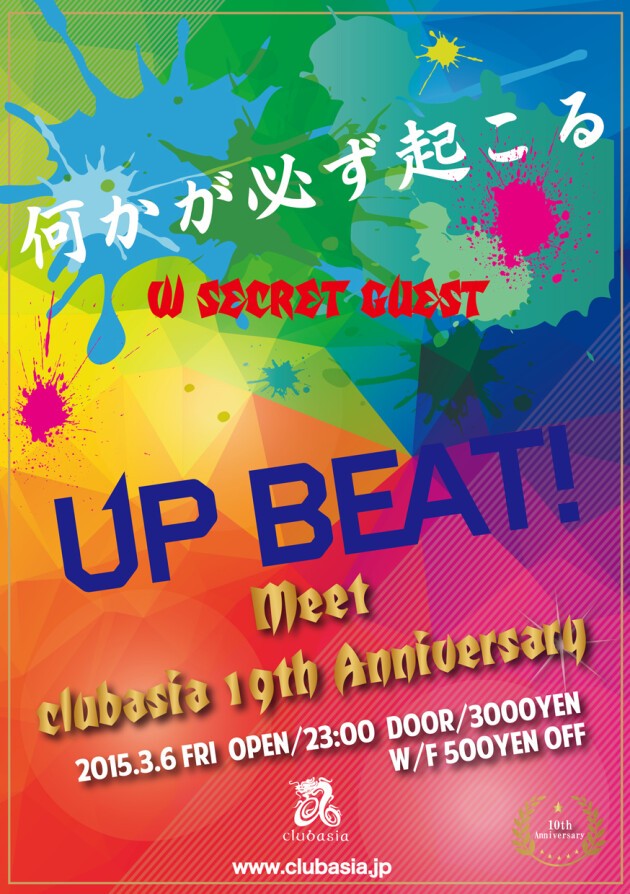 UP BEAT! Will celebrates 19th anniversary of its old haunt clubasia with urgent participation of 2 sets of secret guests!