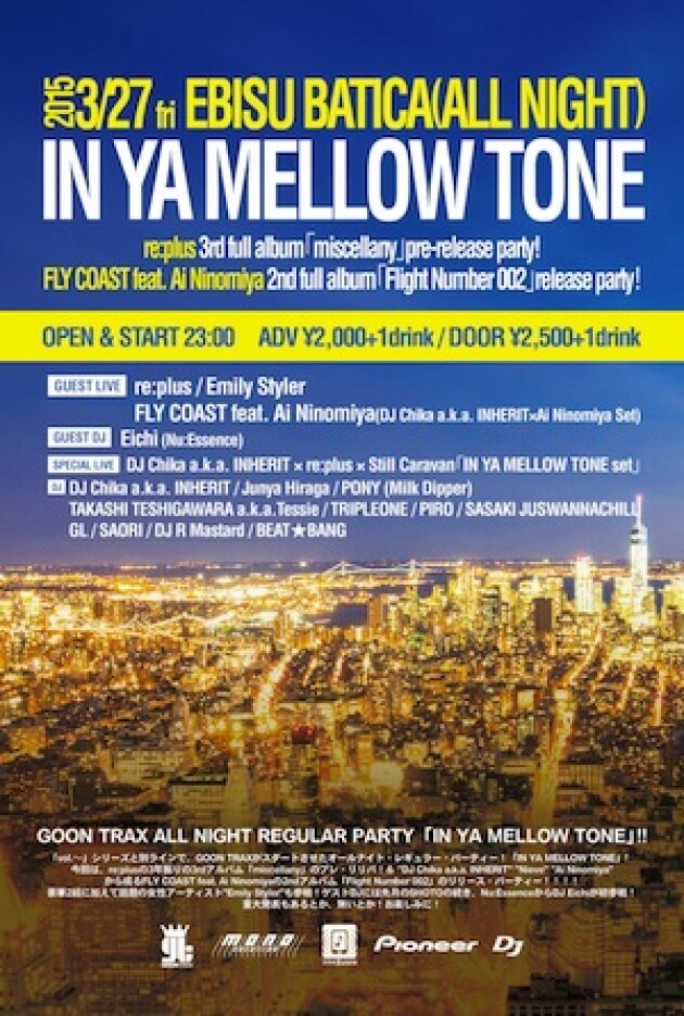 「vol.〜」シリーズと別ラインで、GOON TRAXがスタートさせたオールナイト・レギュラー・パーティー!「IN YA MELLOW TONE」!