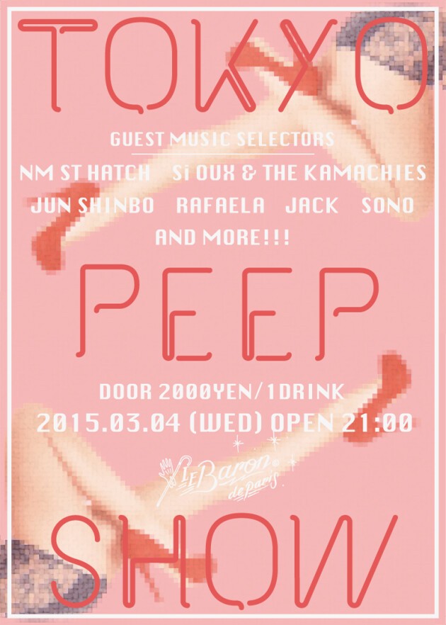 日常の中に、覗いてみたいシーンって沢山ありますよね。お風呂場とか、スカートの中とか、はたまた楽しげな音楽が溢れ出すクラブとか。TOKYO PEEP SHOWでは、DiscoやTechno、Electro、Houseなどジャンルレスにエモーショナルな音楽に満ち満ちた空間となります。つい覗きたくなってしまう夜を。さあ皆さん、東京の夜を覗きにおいで。
