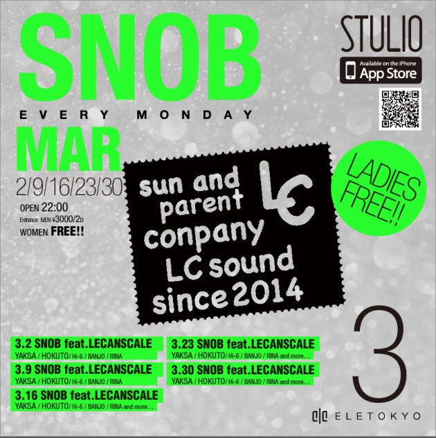 "ファッションとパーティーを繋ぎ続ける”をテーマに毎週月曜日のELETOKYOを飾るレギュラーパーティー"SNOB"。