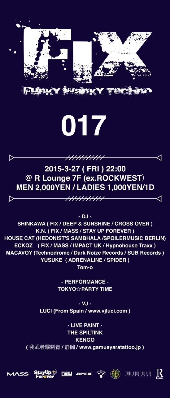 MAIN DJ には、言わずと知れた日本を代表するHARD HOUSE / TECHNO DJ、DJ SHINKAWA,