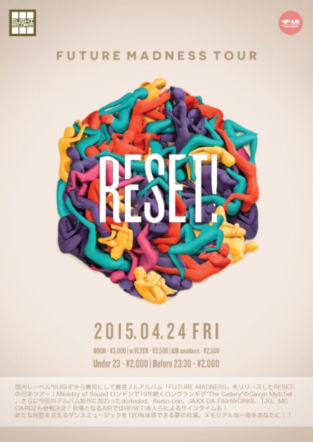 国内レーベル"SUSHI"から最初にして最強フルアルバム「FUTURE MADNESS」をリリースしたRESET!のJAPAN TOUR!