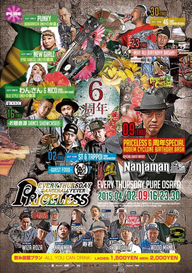 「PRICELESS」は、REALなREGGAE DANCEHALL MUSICはもちろん、HIP HOPやR&B、SOUL等も幅広くPALY!!全ての人達が楽しめる空間です。