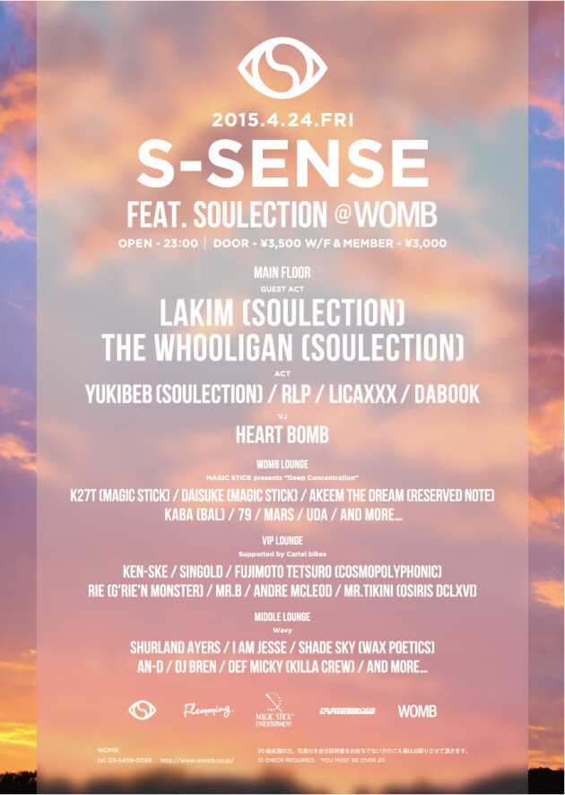 They were formed in 2011 by Joe Kay, Andre Powers, and Guillaume Bonte. Joe Kay is the host of Soulection Radio, which airs on the Net and on KKJZ 88.1 FM every Saturday at 3PM. In 2013 the program was #11 on MixCloud's list of Best Net Radio, and it continues to gain a reputation as being a steady source of great music. The synergy created by both being on the radio and enthusiastically embracing social media platforms by using Sound Cloud as their main music distribution channel has helped their fan base to grow dramatically. LAKIM and THE WHOOLIGAN, two artists who are making waves on the SOULECTION label, will perform in Japan for the first time. They'll join Tokyo-based SOULECTION affiliates Yukibeb, RLP, Licaxxx, and more to form a fresh line-up at S-SENSE.
