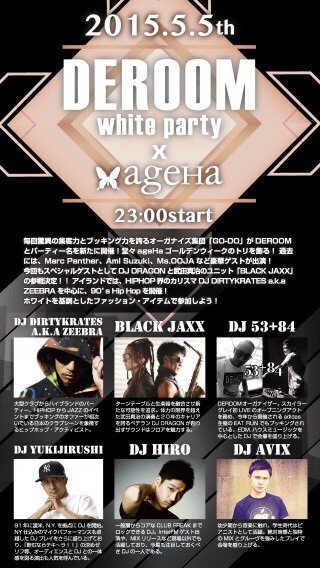 毎回驚異の集客力とブッキング力を誇るオーガナイズ集団「GO-DO」がDEROOMとパーティー名を新たに開催!堂々ageHaゴールデンウィークのトリを飾る!