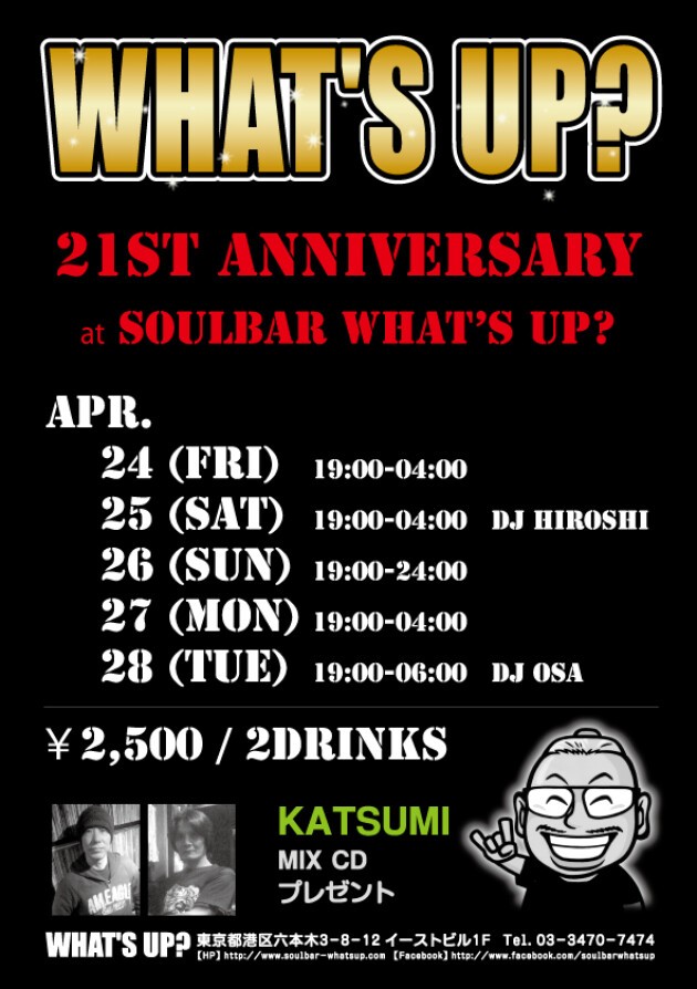 ¥2500/2ドリンク + 漢汁溢れるFUNKのKATSUMix CDプレゼント