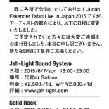 【Judah Eskender Tafari Live In Japan 2015 日程変更のお知らせ】
