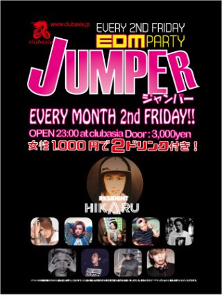 毎月第二金曜日、clubasiaが満員激モリになる女性無料(1000yen/2drink tickets)のEDMパーティー「JUMPER」