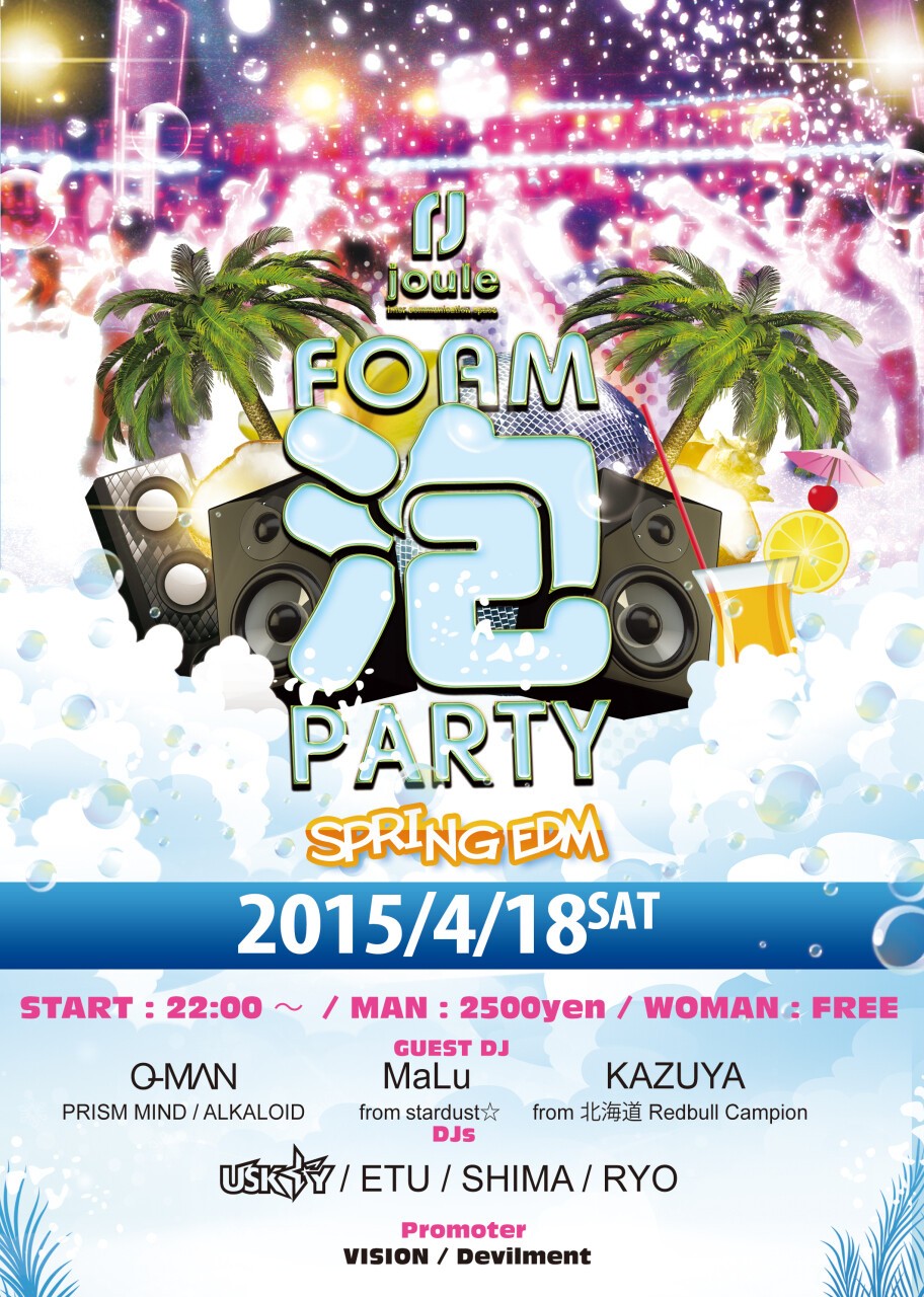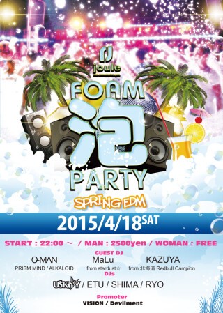 これでもか!?ってほど泡まみれになるJOULE名物「泡マシーン」!強力な泡マシーンによる「泡PARTY -SPRING STYLE EDM-」が常夏仕様の暖房でまたまた贅沢な季節はずれのBIKINIパーティーを企画!