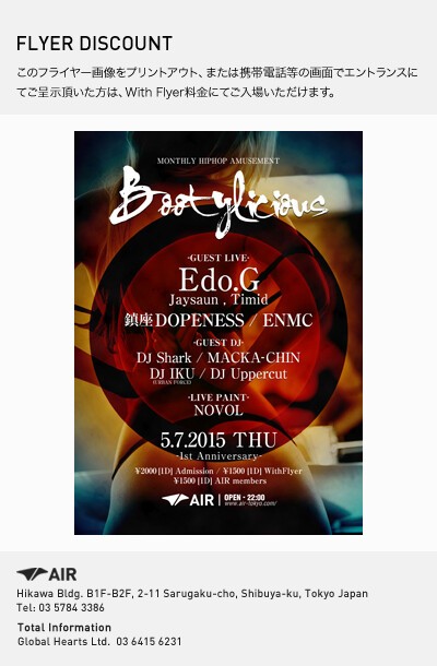 「Edo.G Japan Tour Tokyo x Bootylicious 1st Anniversary」開催決定