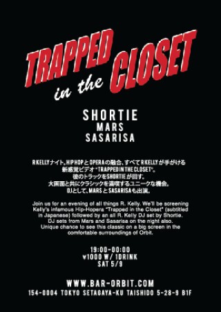 R Kellyナイト。hip hopとoperaの融合、すべてR Kelly が手がける新感覚ビデオ"TRAPPED IN THE CLOSET"(日本語字幕付き)。 彼のトラックをshortie が回す。大画面と共にクラシックを満喫するユニークな機会。